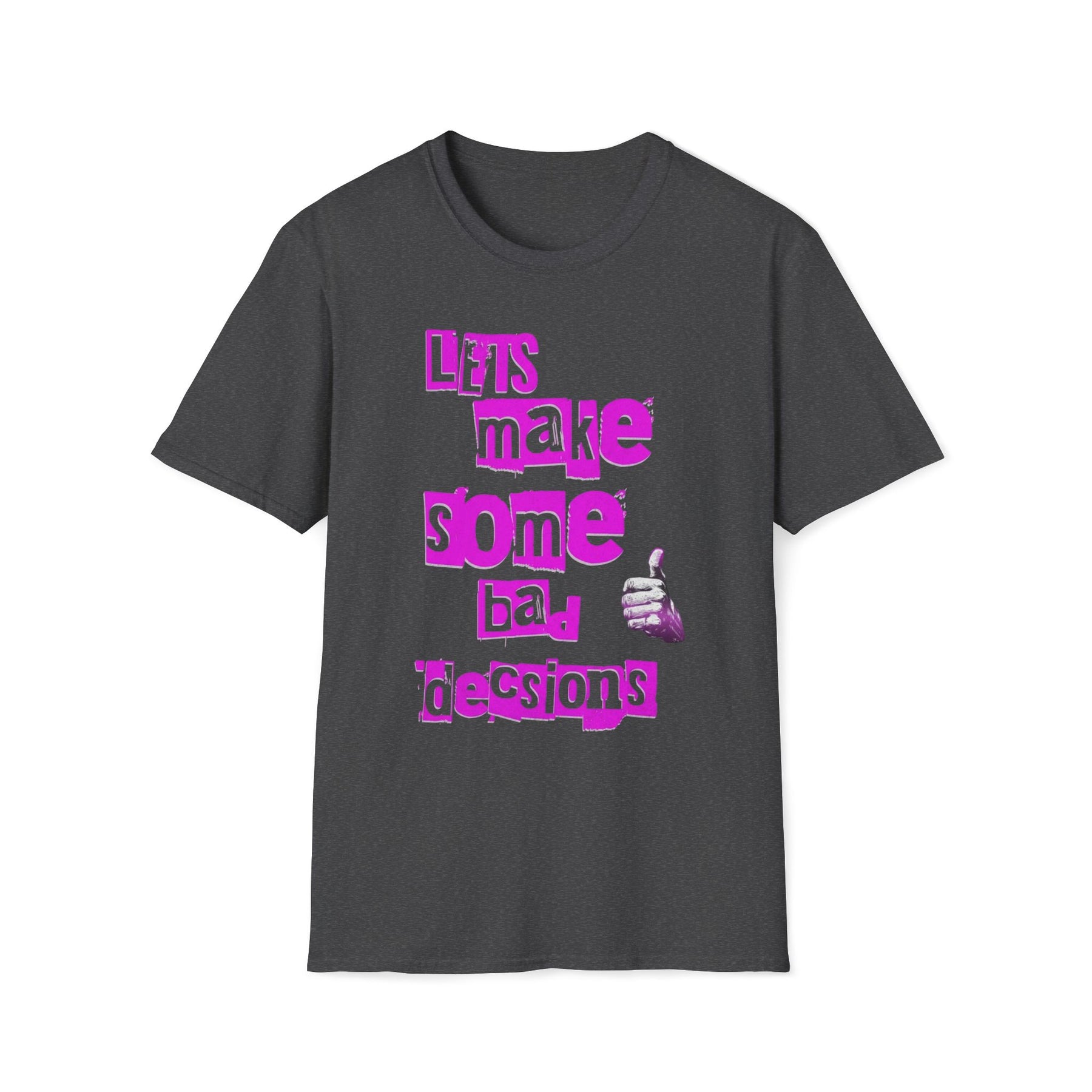Turn up the volume on your style with the ultimate rebel anthem. Inspired by the raw energy of the iconic "Bad Decisions" era, this t-shirt features a bold, punk-rock ransom note design in high-contrast neon magenta. Whether you're heading to the BTS 2026 World Tour or just want to stand out in the crowd, this tee captures that "don't care" attitude with a sarcastic thumbs-up graphic and a gritty, DIY aesthetic.